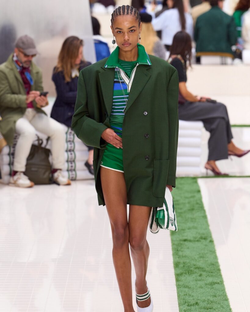 Miu Miu first signalled the return of the trend in its Spring ’24 collection, pairing layered polo shirts with barely-there ruffled minis. By Spring ’26, the polos remained, but hemlines had dropped to more conservative midi lengths (if that’s not a recession indicator, what is?). Prep also made its way onto Jack McCollough and Lazaro Hernandez’s debut runway for Loewe, taking layered shirting and popped colours to a whole new extreme. Meanwhile, Lacoste leaned into its athletic roots, offering bold pops of colour (think green, blue, and red), performance-coded tracksuits, and slouchy silhouettes.