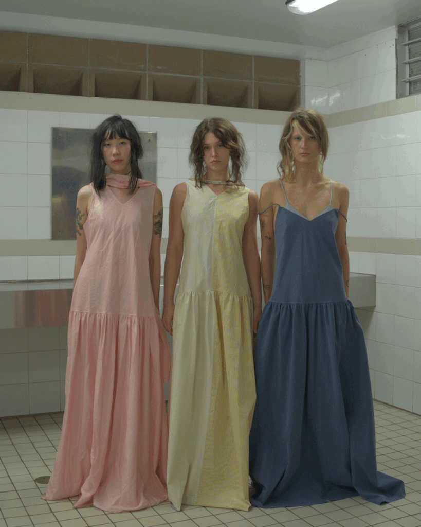 All of his fabrics — from the draping silk voiles to Japanese shirting — are sourced second-hand. “Not growing up with a lot of money, you learn to use what you have,” he said, “Even now, in my brand, I use a lot of upcycled fabrics— if it’s not deadstock fabrics, then it’s something I found at the op shop.” He first explored fashion through the Hokonui Fashion Design Awards in high school, where he entered the upcycled categories and won. That early recognition, followed by a sustainability-forward education at Te Pūkenga, shaped the upcycling ethos of Mercury. Its latest collection combines bold patterns with soft hues and fabrics in blues, pinks, and yellows, to make for a quintessentially beautiful portfolio.