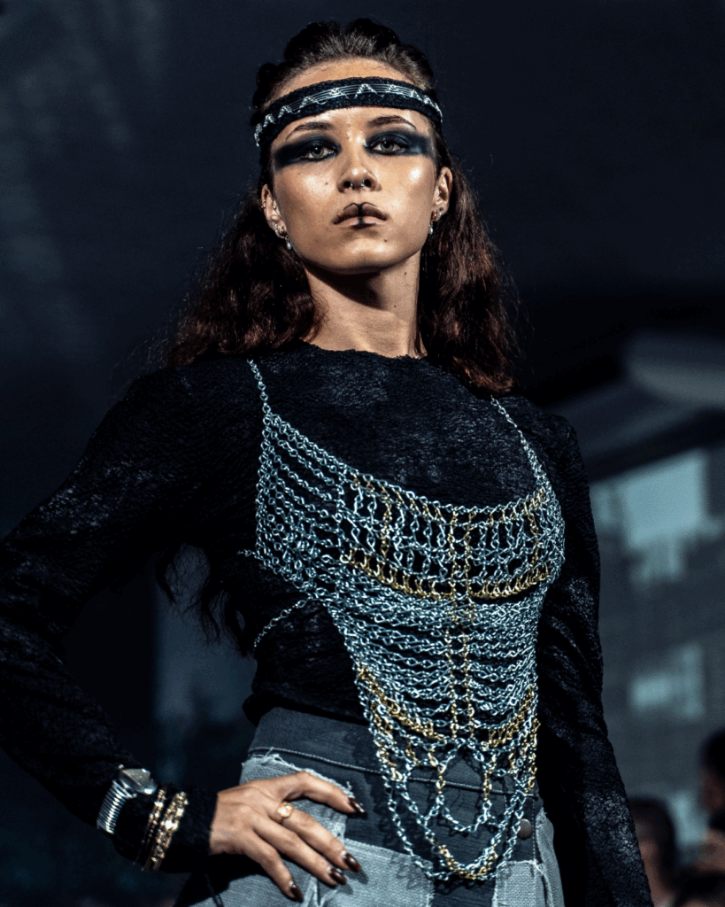 Giles embraces jewellery as a medium that can move fluidly across moods, identities, and contexts. ‘The Kismet’ was soft and romantic, centered on love, heartbreak, and womanhood, while her show with Mora-Hill leaned into something bolder and more masculine. Through different shows, her love of merging performance and wearable art with fashion was cemented. Giles is drawn to the intersection — chainmail and wire wrapping as both craft and spectacle. “I want to break through the boundaries of how accessories are perceived.” Looking ahead, Giles hopes to show at the World of WearableArt in the capital and continue creating. “I never thought I’d end up here,” she says. “I was no good when I first started, but it surprised me and opened doors I didn’t even think existed.”