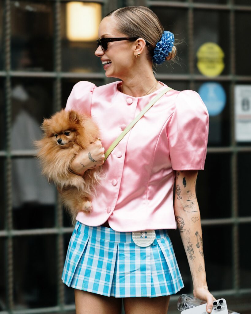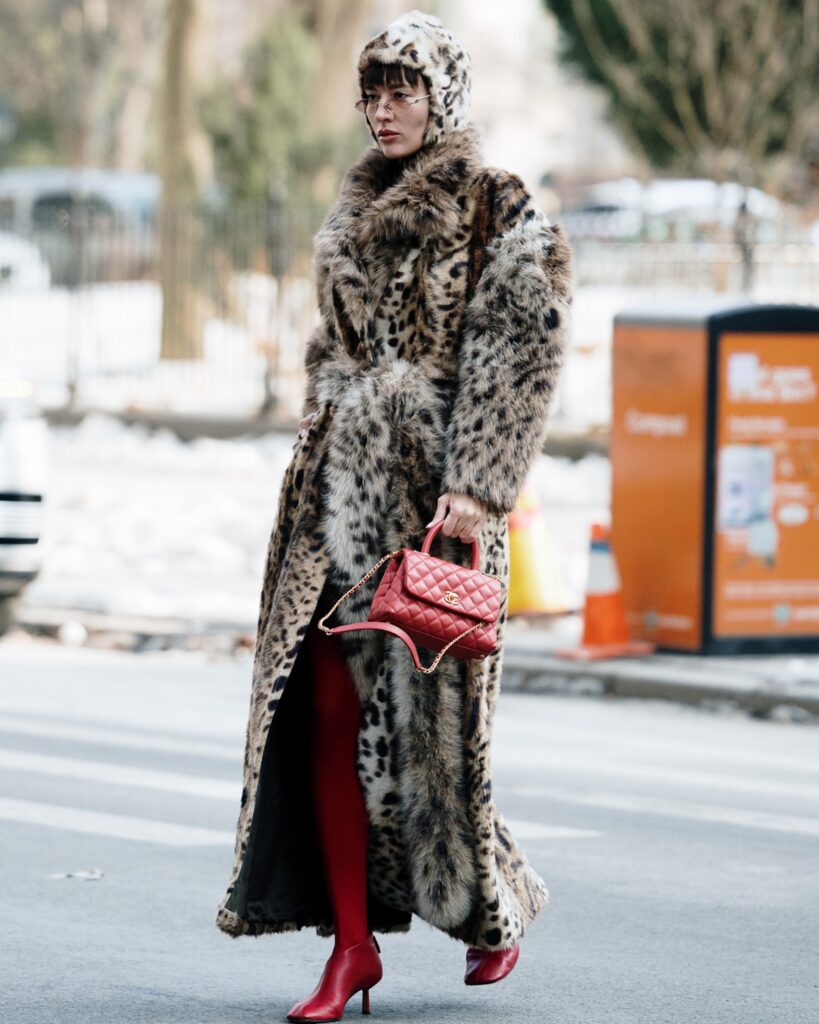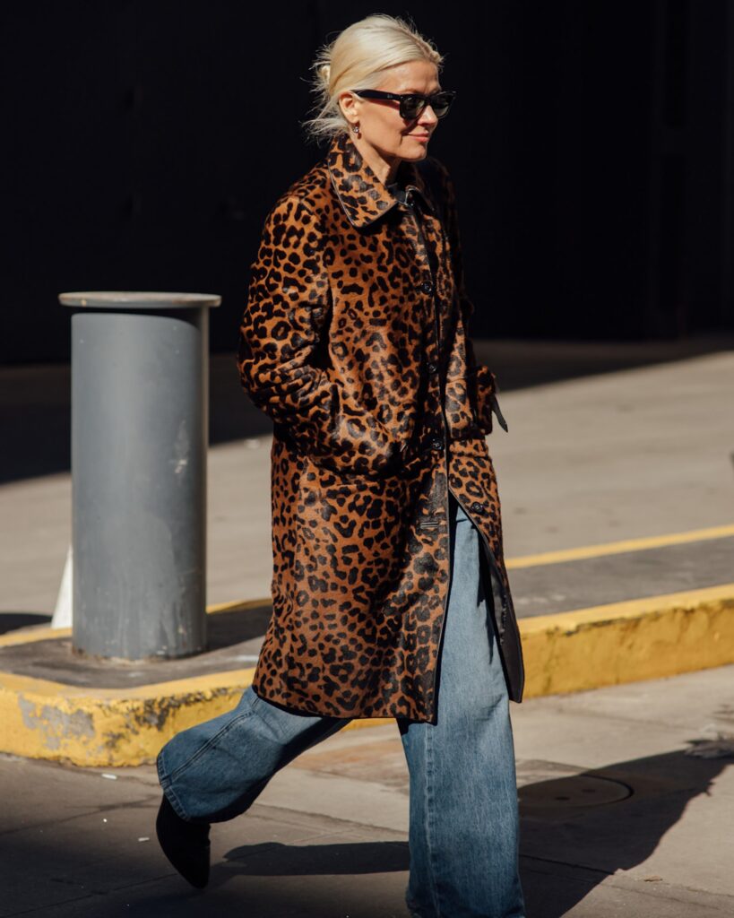 The street-style set took the term “concrete jungle” literally this week, embracing leopard-print coats and accessories as their unofficial uniform. Layer over your favourite denim and a button-up shirt to elevate the everyday or embrace your inner maximalist by pairing it with clashing prints or fabrics – snakeskin and red leather were standout pairings outside the shows.