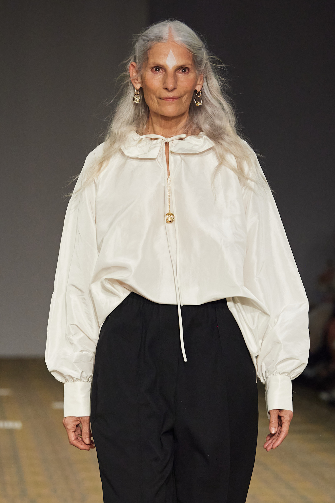 The beauty looks pushed boundaries, too. In a week where ‘clean girl’ hair and no-makeup makeup dominated, Seddiq’s models wore sculptural, cone-shaped updos and dark lipstick that matched the drama of the garments. It was avant-garde in the best way.