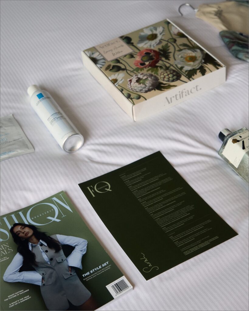 Back at Hilton Auckland, it was time to check into our harbourside rooms, where floor-to-ceiling views of the city skyline and Waitemata Harbour provided the perfect backdrop for a leisurely moment with the latest issue of Fashion Quarterly. But, all thoughts of lush king-sized beds and harbour views were put on hold as the famed FQ Sleepover gift bag was waiting. This season’s gifiting included hand-selected products from Kérastase to nourish and revitalise our hair, a sleepwear set from Wallace Cotton, skincare essentials from La Roche-Posay, a stylish scarf from Artifact and a bottle of Roku gin.