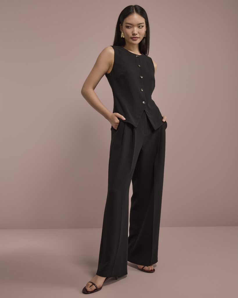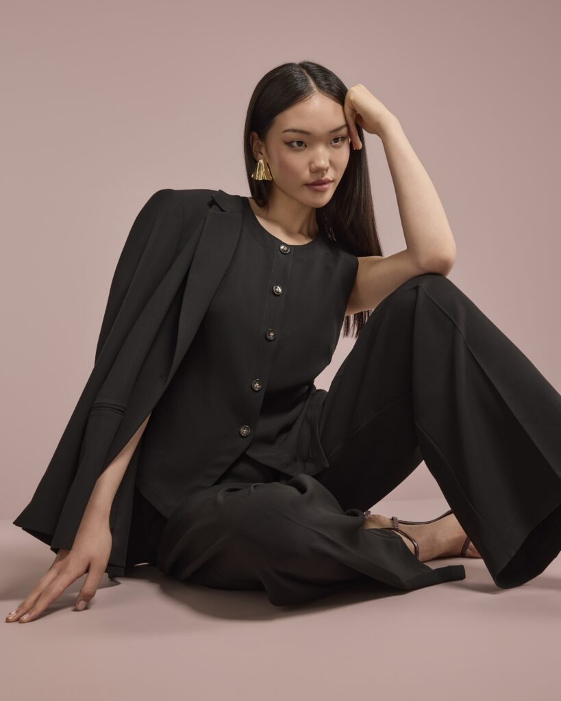 She sets the tone for the week by styling the Lloyd Sleeveless Blazer paired with the Flynn Tapered Pant for an effortless take on tailoring. Midweek, the Frankie Blazer is layered over a classic white t-shirt and the effortless Otto Wide Leg Pant, finished with statement earrings and black sneakers for the perfect high-low office look. To close out the week, the Foy High Neck Waistcoast and Dylan Longline Short offer a lighter, hot weather-friendly approach to suiting. Designed for real life, the Tailored Collection embodies an understated ease — pieces that feel considered, versatile, and made to move with you through the work day.