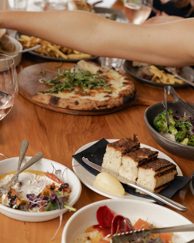 Our first stop: Man O’ War Vineyard. Located on a serene stretch of coastline at the far Eastern end of Waiheke Island, we lingered over long glasses of rosé and shared plates that tasted like summer – think fresh oysters, roasted vegetables, and perfectly prepared pizzas. Lunch here is less a meal and more an unhurried ritual, the kind that invites you to stay just a little longer.