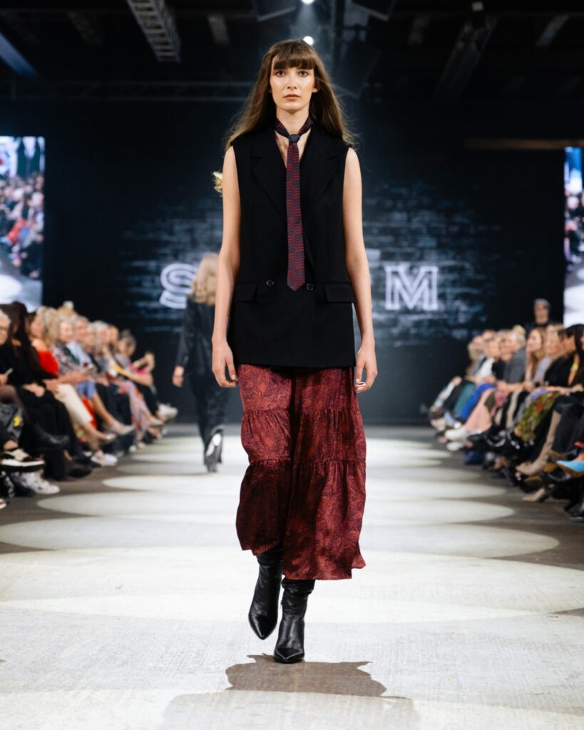The runway shifted easily between playful and tailored. NOM*d showed khaki tones and utility-inspired looks, styled with mesh headscarves and Puma footwear. Storm leaned into tailoring with sharp suiting, zebra prints, and slim ties. Tuesday lifted the pace with colour and print. Trelise Cooper, Kathryn Wilson, Moochi, Hailwood, and Federation each contributed their signatures, a testament to the breadth of New Zealand fashion at its best.