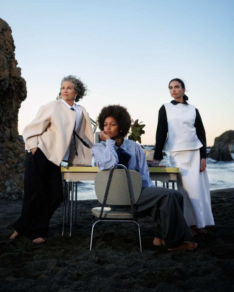 The campaign location – windswept pebble beach and a retro-fitted office – is so visually striking. From casting to location to styling — what were the key elements you wanted to get right to bring this campaign to life?