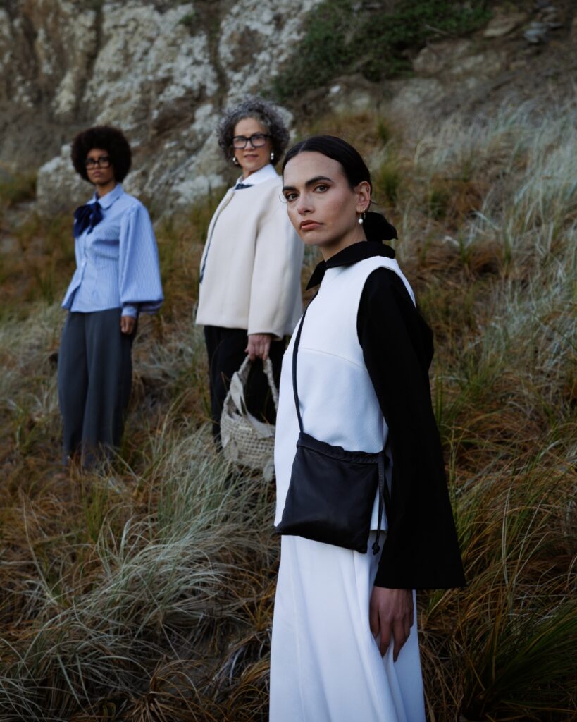 I gather a lot of inspiration through historical garment research, mostly from the Victorian epoch. As a small label, I don’t really believe in dropping collection after collection in order to keep up with the masses: In my eyes, it’s also not how the average kiwi woman shops. They find one piece there and one piece here and try to work it into their existing wardrobe. I like to feed-in new garments that feel right at the time, and with the current winter blues we’ve been having, it’s natural to want to reach for a long-sleeve shirt or play with layering. I spent a lot of time trying to perfect our newest blouse, the Lillian Shirt in Pinstripe; I wanted the sleeves to be generous in volume, without being impractical, and I’m confident we nailed it. Some of the other garments styled in were Winnie Catherine garments that are already available, as well as the long-awaited Margaux Coat in a 100% wool vanilla biscuit coating which is about to come out!