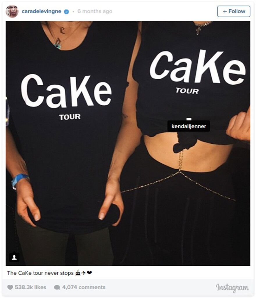 Kendall and Cara refer to their friendship with the tag name CaKe which is a mash up of their first names, tagging their instagram posts with #CaKe.