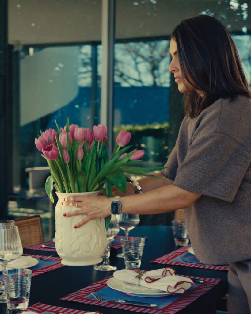 Spring is the ideal time to forage your florals. Clippings from the garden or a neighbourhood wander will do. Keep arrangements low and scattered in small vases so conversation flows as easily as the wine. Bowls of seasonal fruit or vegetables can also double as sculptural centrepieces — chic and edible.