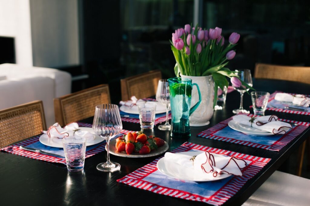 A thoughtfully styled table sets the tone. Layer a beautiful tablecloth with textured place mats and cloth napkins. Don’t be afraid to play with colour, print, or even a bit of a clash — spring is the season to be bold.