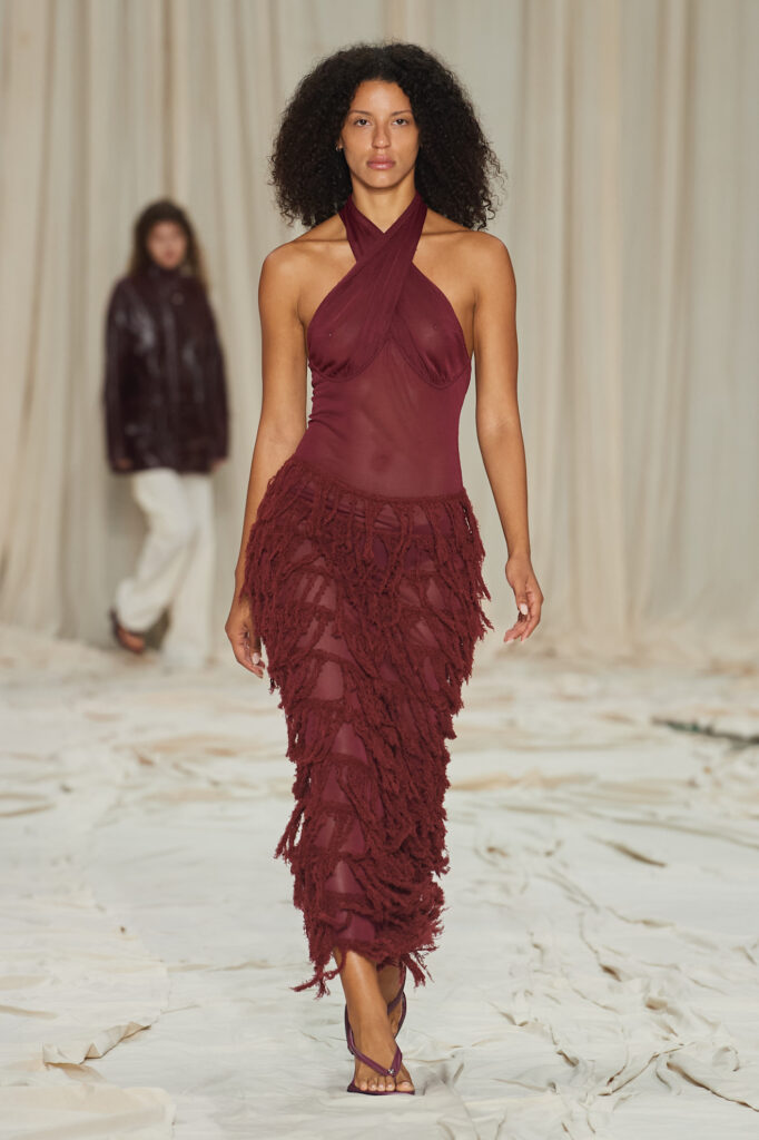 The Frontier offered a different kind of fashion high – one that felt fresh, collaborative, and forward-thinking. It was the cool girl in the corner with great taste and zero need to shout about it. I loved the sheer, barely-there layers, the quiet tailoring, and the slightly surreal runway draped in loose fabric (gorgeous to look at, mildly terrifying to walk on). ESSE’s coats now have me in a chokehold, and Paris Georgia continues to prove she understands modern femininity like few others.