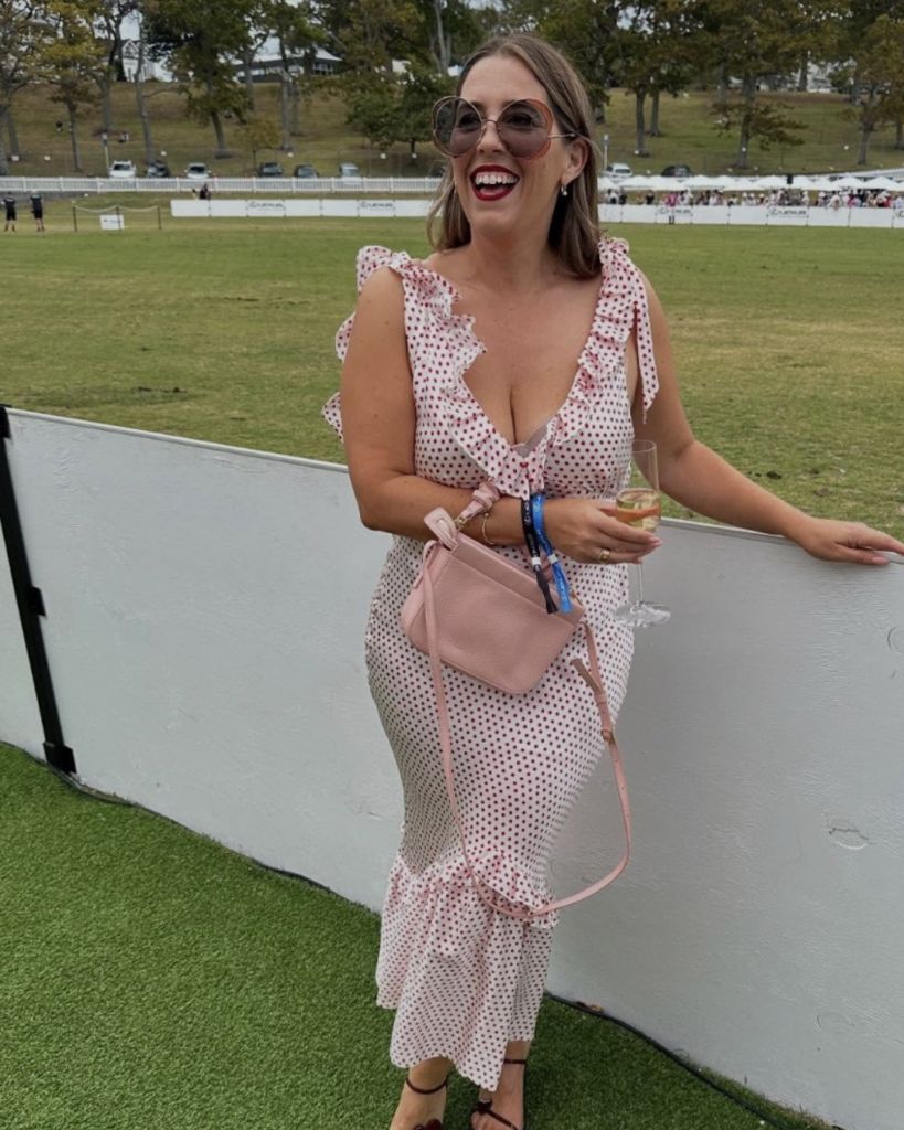 “If I’m investing in a piece, I want to get plenty of wear out of it. I always consider cost-per-wear—the more I reach for something, the more worthwhile it becomes. Some of my most-loved pieces, like those from Maggie Marilyn and Harris Tapper, are timeless staples I keep coming back to. On the weekend I wore a Maggie Marilyn polka dot dress that I first purchased six years ago for my daughter’s christening…”
