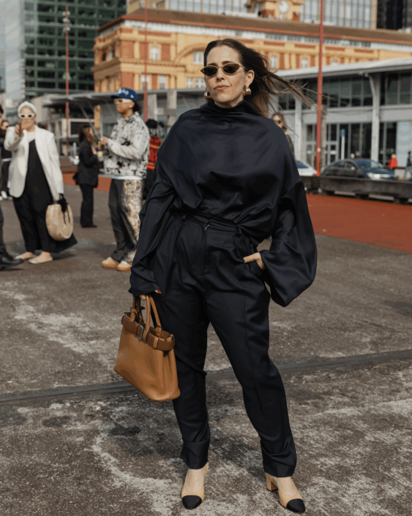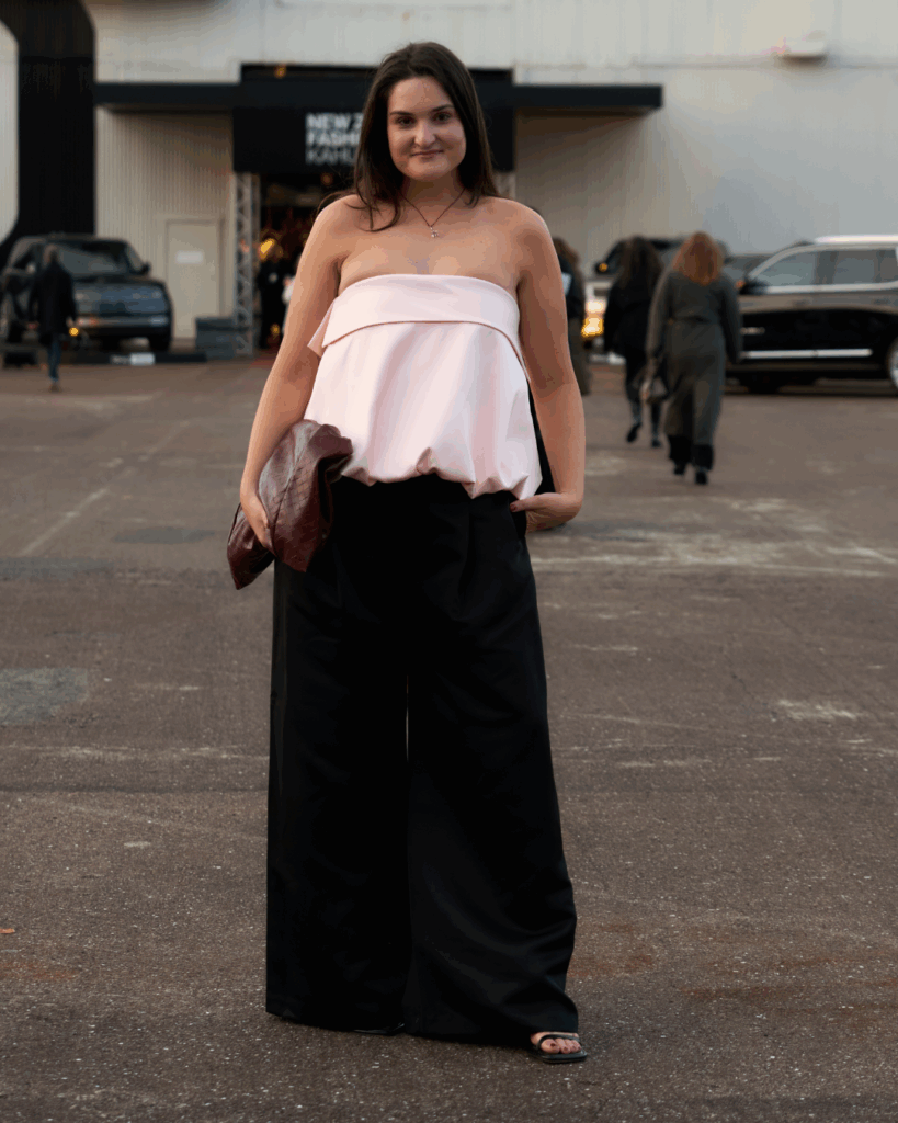 This was the team’s busiest day of the week, which saw us attend multiple shoes throughout the day – including Claudia Li, Adrion Atelier and Kāhui Collective – before switching up our looks for a night of sky-high heels (Kathryn Wilson) and equally high photoshoots (Rebe). Our team opted for elevated separates paired with chic yet practical bags that could store everything we needed for a busy day of shows.